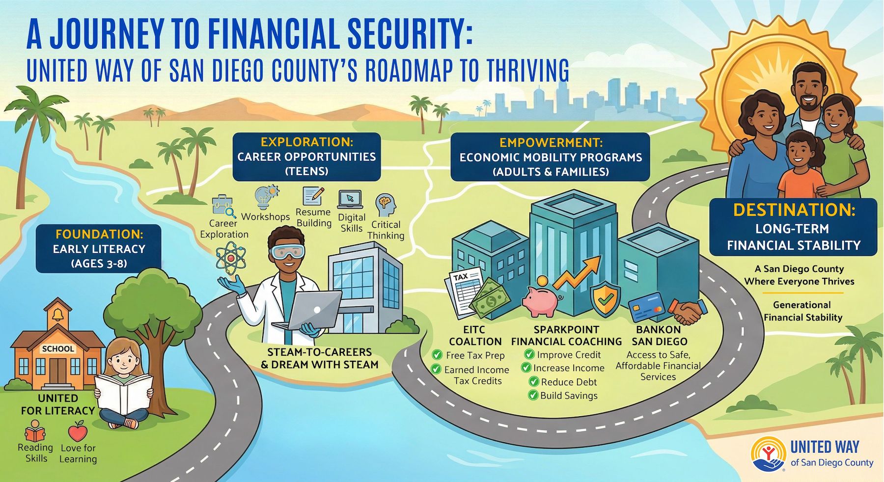 April is Financial Literacy Month, a time dedicated to highlighting the importance of financial education and the tools needed to achieve financial stability. At United Way of San Diego County (UWSD), we believe that financial literacy isn’t just about budgeting and saving; it’s about a holistic ecosystem of support that starts in early childhood and continues through a person’s lifetime.